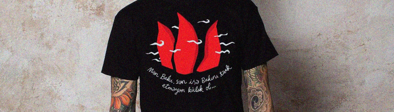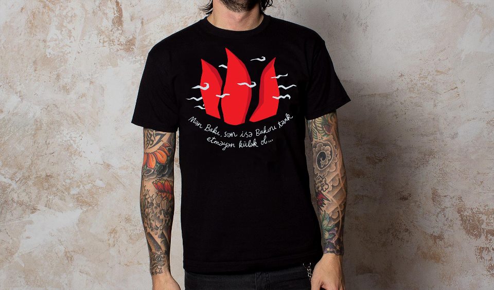 we created a contest for our facebook fans who had to come up with the most personal, original thought. the top ten thoughts were selected, designed and printed onto t-shirts, which we gave away. the winner was quite romantic, submitting the following verse, with the flaming towers in the wind: I am Baku, and you are the wind that never leaves Baku. (the black t-shirt)